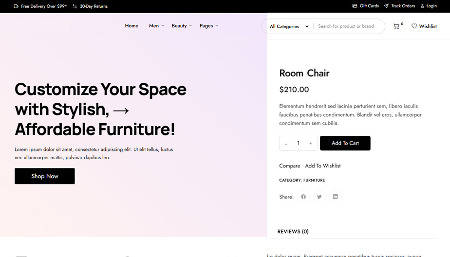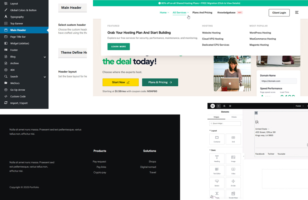 Enjoy flexible header and footer designs, including options for fully custom layouts to match your brand perfectly
