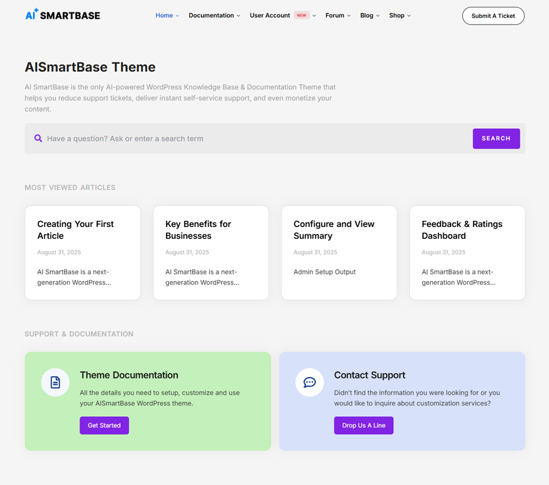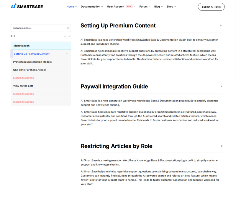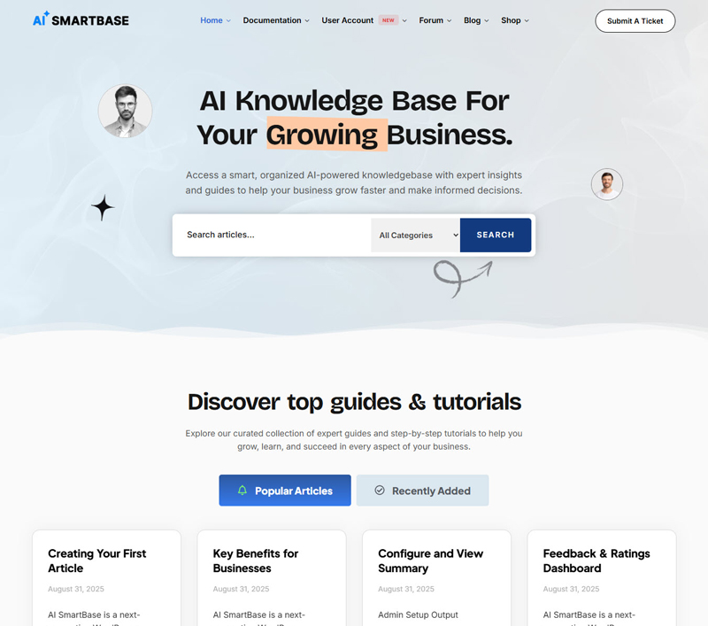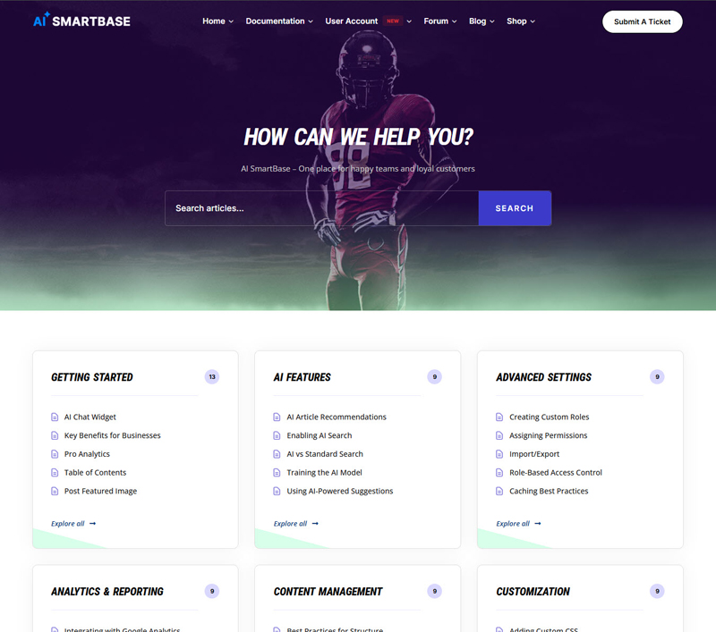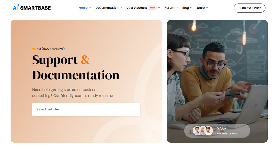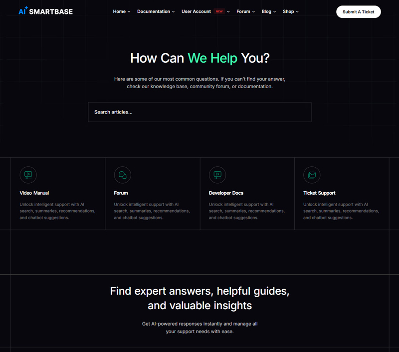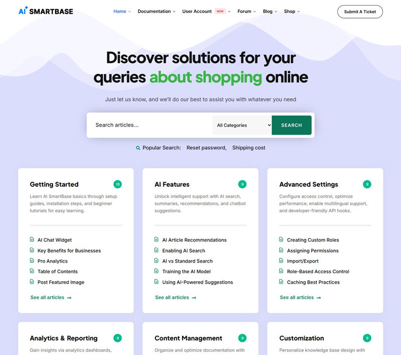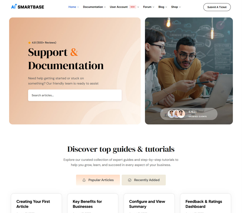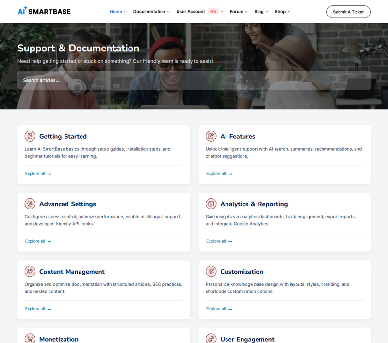 Build a complete support ecosystem with KB, DOC, forum, Private Support, Content Privacy, Monetization, and a Powerful Dashboard – enhanced by AI for smarter support.
