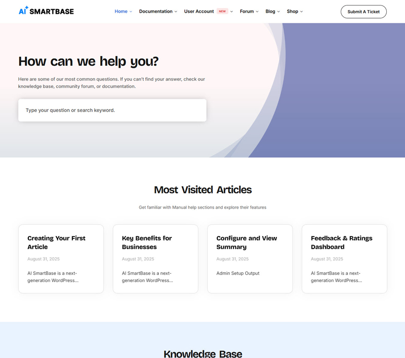 Create a smart knowledge hub with forums, docs, and a knowledge base to boost support and user engagement.